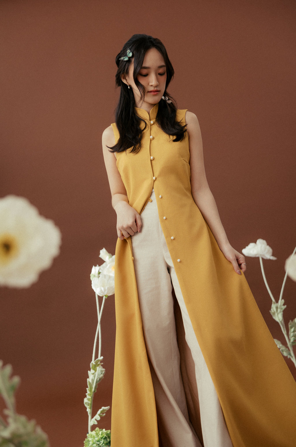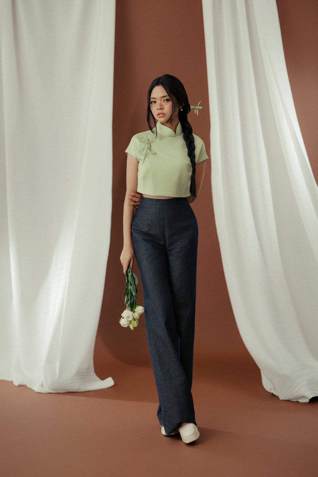 These versatile flared trousers, with a seamless, no-waistband look, are perfect for pairing with any top. Choose the fabric of your choice to create your new go-to trousers. Pair this top with our Iris Ribbon Cheongsam Top to complete the look!