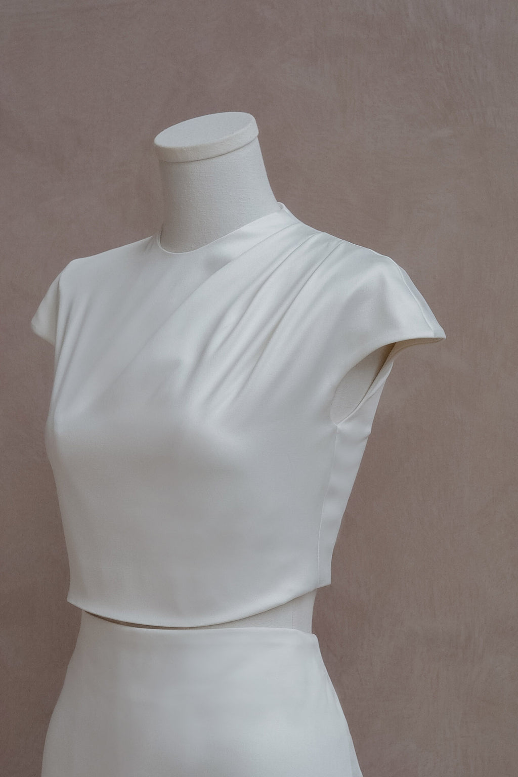 Inspired by a lifestyle that centers on functional and investment dressing, where luxury meets craft and creativity. Our Satin Cap Sleeves Cropped Top is made with a soft and lustrous satin that has a beautiful drape. This top comes in a cropped silhouette, featuring pleating details on the neckline and cap sleeves that flows down the shoulder. Pair it with our matching Satin Midi Skirt to complete the look. Available in three colourways - Off White, Champagne, and Keppel Green.