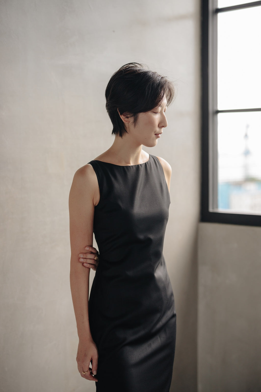 The Airin Sheath Dress is available for off the rack and made to order purchase.